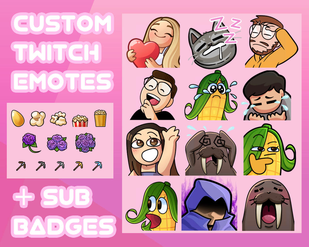Commissioned work of graphics such as emotes or icons specialized for Twitch!