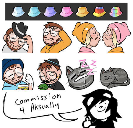 Commissioned emotes and sub badges done for Twitch streamer Aksually!